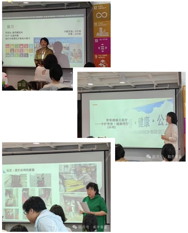 浏洋、郭晓洁、林长波三位组长汇报项目成果,滕云理事长颁发结项证书。从社区健康项目“争取场地的曲折”到非遗课堂“300余位老人接触3D非遗模型”,基层实践故事尽显温度。 - 方法论输出:老师分享 “赋权参与、场地适配、迭代进化、循证评估” 干预法;青益中心分享后续计划: ✅ 9月和平区域传播周 ✅ 12月全球十城联动 ✅ 2026年3月志愿服务认证培训